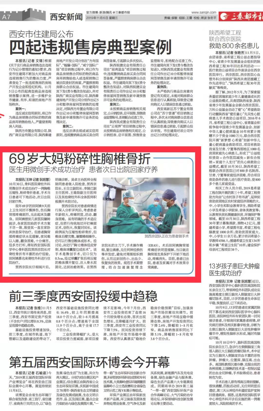 三秦都市報(bào)報(bào)道—69歲大媽粉碎性胸椎骨折 醫(yī)生用微創(chuàng)手術(shù)成功治療。點(diǎn)擊閱讀。
