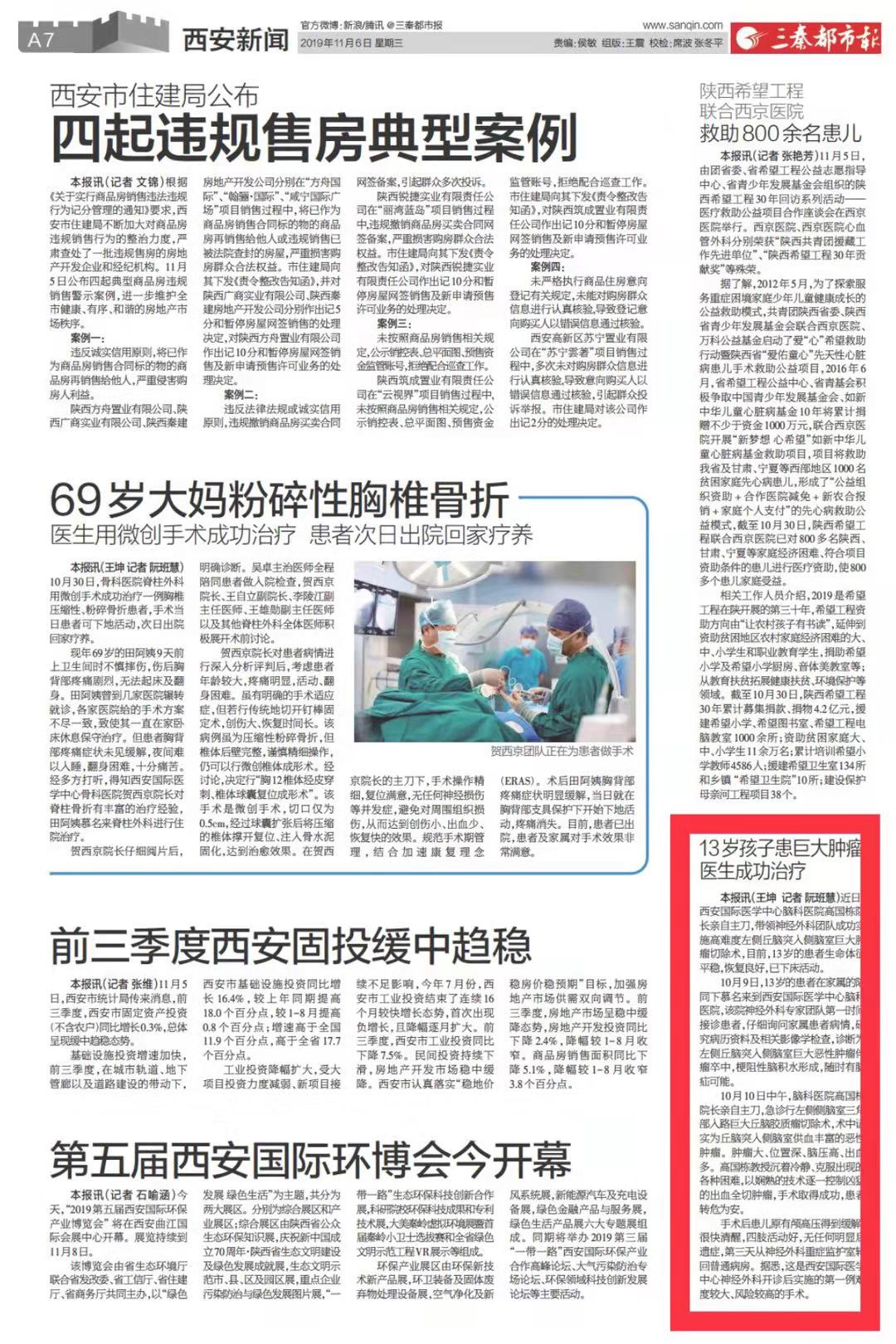 三秦都市報報道—13歲孩子患巨大腫瘤 醫(yī)生成功治療。點擊閱讀。