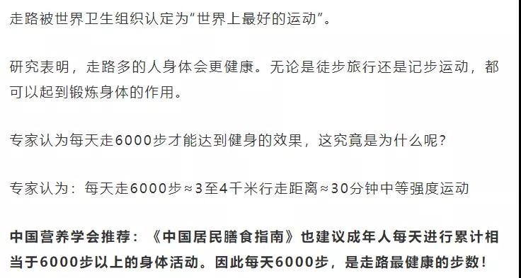 但是不要盲目的“拼微信步數(shù)”,在健康的基礎(chǔ)上,有意識地加大、加快步伐,將運動融入生活、增加熱量消耗,讓走路這顆“長壽藥”發(fā)揮最大效果。