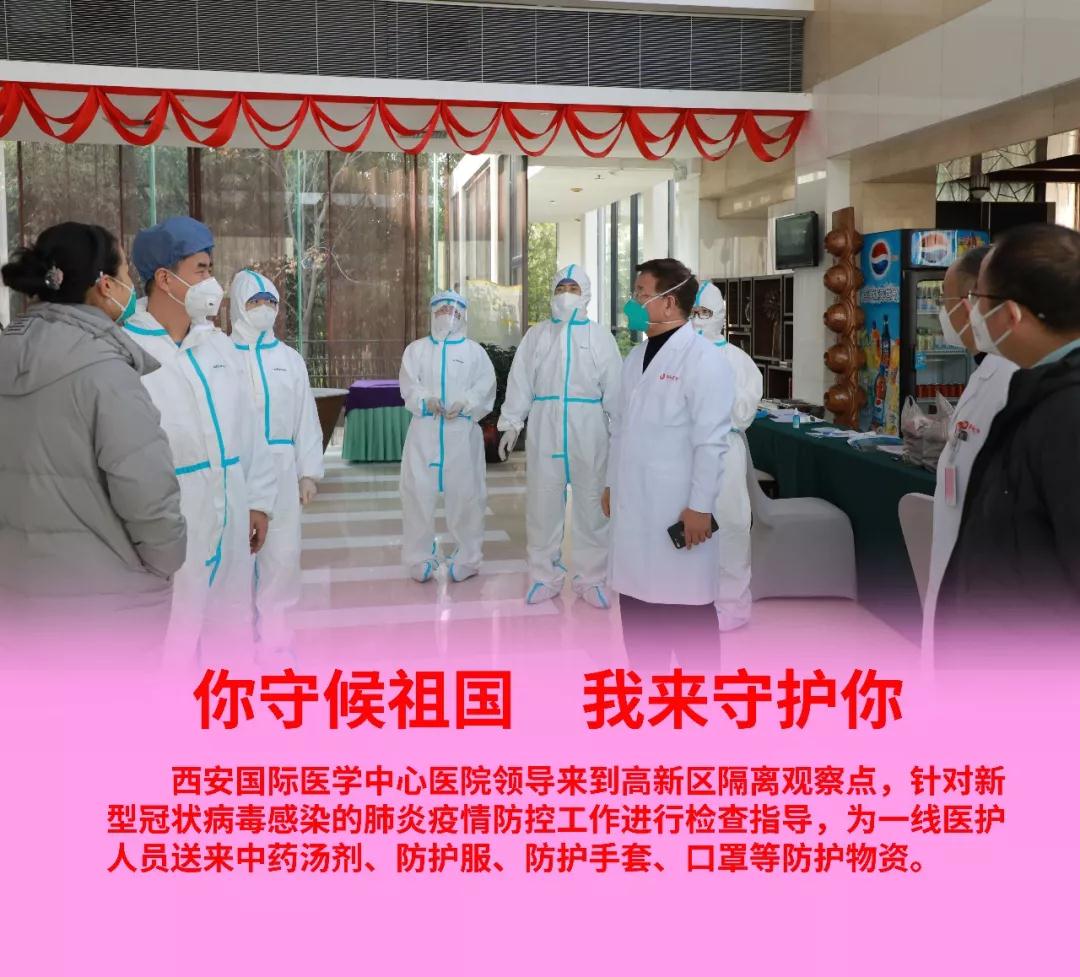 疫情防控是一場沒有硝煙的戰(zhàn)爭,這場戰(zhàn)爭牽動著每一個人的心弦。此前,院長尹強、總經(jīng)理王志峰、副院長楊峰等,先后來到高新區(qū)隔離觀察點,為一線醫(yī)護人員送來中藥湯劑、防護服、防護手套、口罩等防護物資。