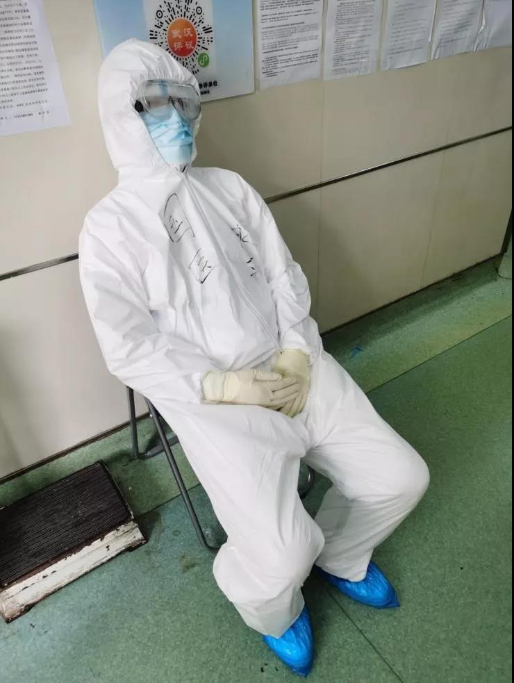 正月十五的夜,月兒很圓。實在太累了,得“秒”睡會兒。西安國際醫(yī)學(xué)中心醫(yī)院赴武漢醫(yī)療隊隊員正奮戰(zhàn)在武漢第八醫(yī)院的一間間病房里。隊員劉永平醫(yī)生已連續(xù)奮戰(zhàn)了三個多小時了,實在太累了,坐在凳子上都睡著了……這一幕正好被旁邊的同事拍到了。進(jìn)入武漢第八醫(yī)院(卓爾長江應(yīng)急醫(yī)院)工作,醫(yī)療隊劉永平醫(yī)生每天穿梭在病房之間,和護(hù)理人員一起查房,詢問患者情況,制定診療方案,這一切場景在醫(yī)院里好像都是稀松平常。唯一不同的是,穿戴全套防護(hù)裝備的他,工作一兩個小時就需要停下來,喘口氣,然后再重新投入工作。