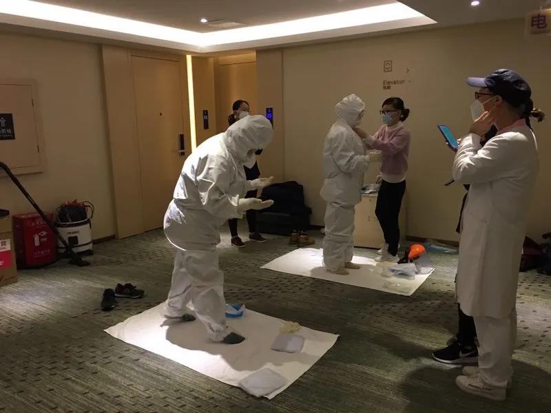 從伴隨清晨第一縷陽(yáng)光睜眼開(kāi)始,測(cè)體溫、多飲水、適當(dāng)運(yùn)動(dòng)鍛煉呼吸、84消毒液噴灑涂抹房間角角落落等等,一樣不落。我自知已經(jīng)踏上這光榮的戰(zhàn)場(chǎng)和兄弟姐妹們并肩作戰(zhàn)。同時(shí),為了做好戰(zhàn)斗準(zhǔn)備,作為戰(zhàn)士的我們今日進(jìn)行了穿脫“盔甲”的嚴(yán)格培訓(xùn)。