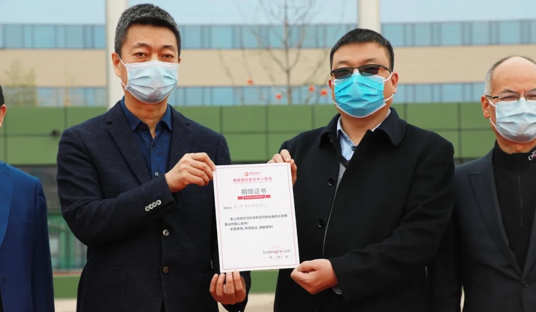 孫義寬副總裁代表西安國際醫(yī)學(xué)集團(tuán)全體員工對兩家愛心企業(yè)的捐贈(zèng)表示衷心感謝!兩家企業(yè)對西安國際醫(yī)學(xué)集團(tuán)醫(yī)療工作的關(guān)心和對抗疫一線醫(yī)護(hù)人員的關(guān)愛,展現(xiàn)了企業(yè)抗擊新冠肺炎戰(zhàn)“疫”必勝的堅(jiān)強(qiáng)信念。西安國際醫(yī)學(xué)集團(tuán)會(huì)持醫(yī)者仁心、佑百姓健康,持續(xù)做好醫(yī)務(wù)工作,服務(wù)社會(huì),關(guān)愛民生。