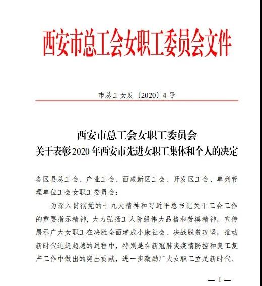 西安市總工會在《關(guān)于表彰2020年西安市先進(jìn)女職工集體和先進(jìn)個(gè)人的決定》指出,在抗擊新冠肺炎疫情的關(guān)鍵時(shí)刻,薛妍副院長主動請纓馳援武漢、隨州兩地。在戰(zhàn)斗中時(shí)刻以高度的責(zé)任意識和擔(dān)當(dāng)精神做好每項(xiàng)工作。在武漢第八醫(yī)院,她參與專家組工作,規(guī)劃救治重點(diǎn)及工作流程,制定診療方案,保證各項(xiàng)工作順利展開。在隨州市中心醫(yī)院,她負(fù)責(zé)醫(yī)療隊(duì)的后勤保障以及隊(duì)員們的衣食住行,被隨州市委授予“抗擊新冠肺炎疫情先進(jìn)個(gè)人”榮譽(yù)稱號。