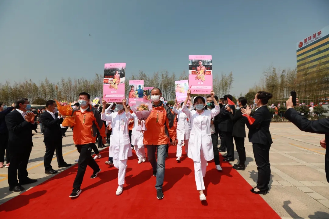 鮮花、掌聲、歡迎曲。西安國際醫(yī)學(xué)中心醫(yī)院萬人廣場的百米紅毯格外引人注目。親人和工作人員夾道歡迎抗疫英雄。國際醫(yī)學(xué)實(shí)際控制人劉建申、董事長史今、副董事長曹鶴玲、副董事長王愛萍、監(jiān)事會主席曹建安、副總裁孫文國、副總裁丁震、副總裁王杲、副總裁孫義寬、財務(wù)總監(jiān)王亞星等集團(tuán)領(lǐng)導(dǎo),以及西安國際醫(yī)學(xué)中心醫(yī)院、西安國際醫(yī)學(xué)高新醫(yī)院、西安國際醫(yī)學(xué)商洛醫(yī)院的領(lǐng)導(dǎo)出席。歡迎儀式由總裁劉瑞軒主持。