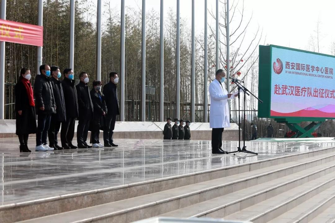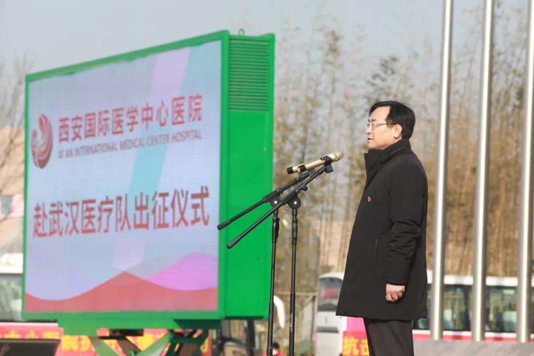 陜西省衛(wèi)健委黨組書記劉勤社說,我代表省委省政府應(yīng)對新型冠狀病毒感染肺炎疫情工作領(lǐng)導(dǎo)小組和辦公室,為大家送行。西安國際醫(yī)學(xué)中心醫(yī)院率先擔(dān)當(dāng)使命,主動組織醫(yī)療隊,感謝你們。希望大家堅定信心、同舟共濟、科學(xué)防治、精準(zhǔn)施策,我們盼望大家凱旋歸來。