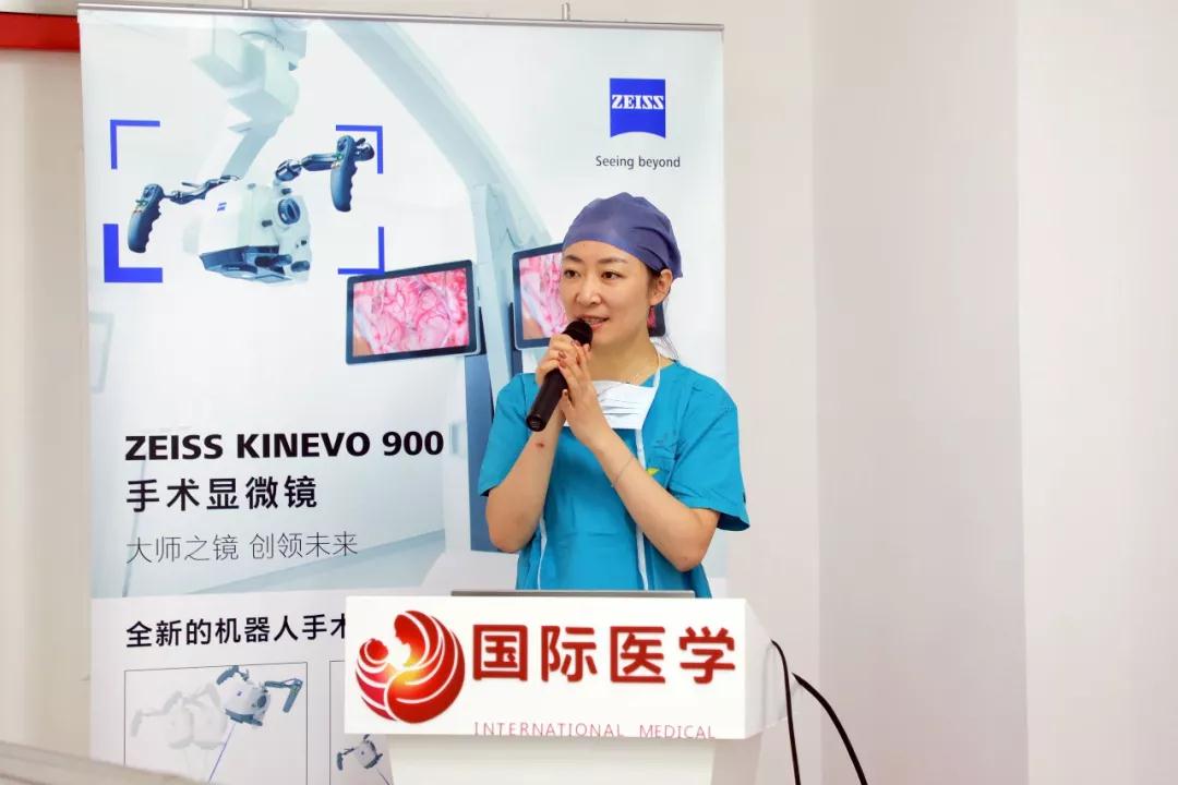 隨后,腦科醫(yī)院名譽院長高國棟使用機器人手術(shù)顯微鏡(ZEISS KINEVO 900),為一位41歲原發(fā)性面肌抽搐的男性患者行左側(cè)面神經(jīng)微血管減壓術(shù)。術(shù)后,患者情況穩(wěn)定。