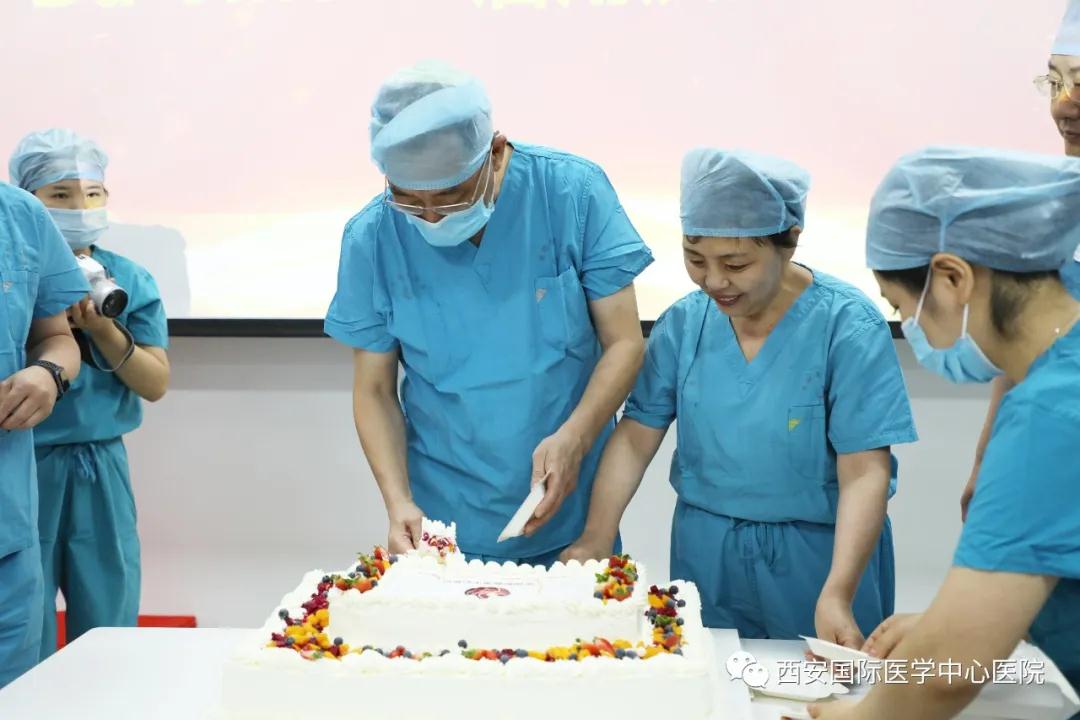 最后,在全體人員熱烈的掌聲下,醫(yī)院領導共同切蛋糕,慶祝所取得的豐碩成果。