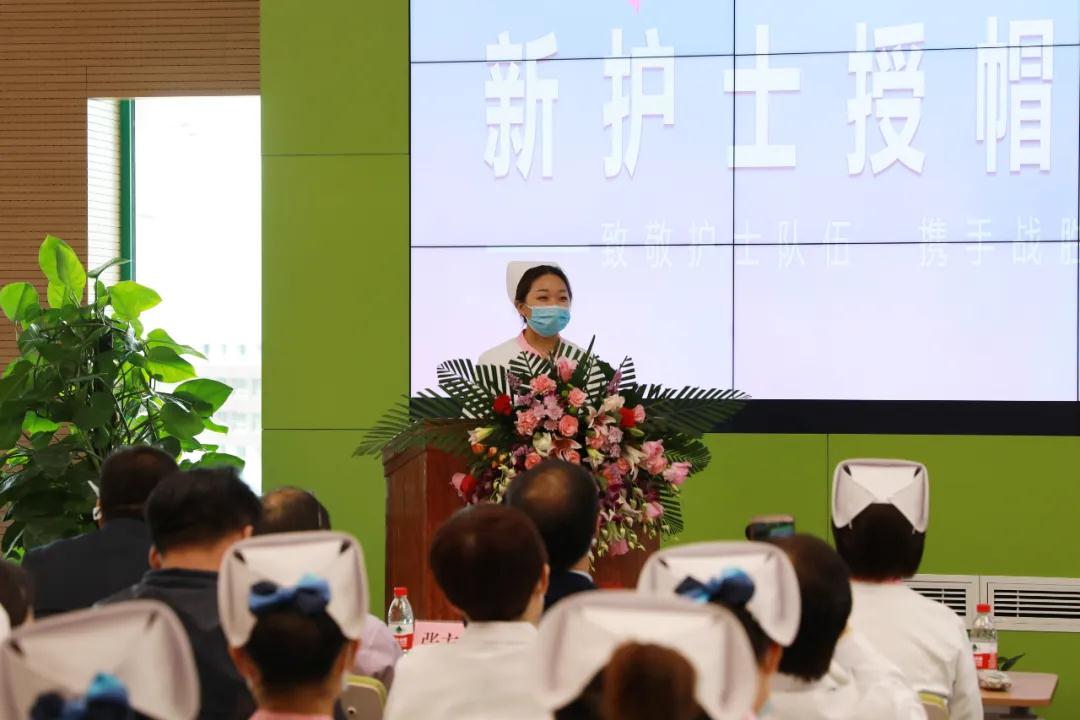 血液凈化中心護士張晶代表全院240名新入職護士發(fā)言,她說,戴在頭上的不單單是一頂燕尾帽,它是責(zé)任,是使命,是擔(dān)當(dāng),更是對新護士們的殷切希望。新冠疫情襲來時,前輩們用實際行動闡釋“南丁格爾精神”和“國際醫(yī)學(xué)精神”,新護士們將傳承使命,用平凡的工作佑護無法衡量的價值!