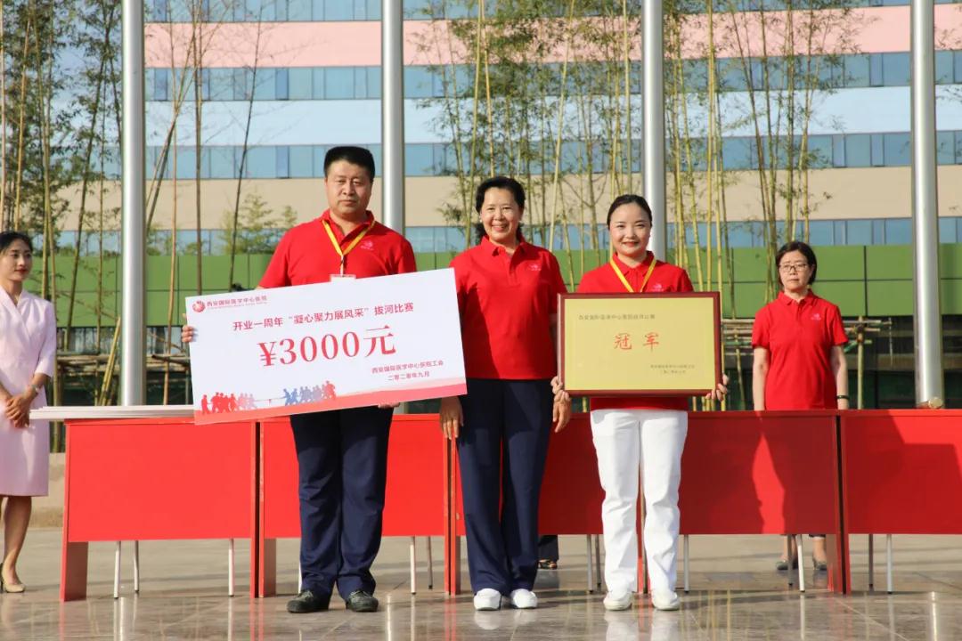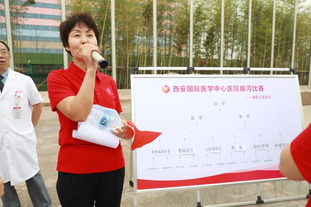 在院慶一周年之際,西安國際醫(yī)學(xué)中心醫(yī)院舉行“凝心聚力展風(fēng)采”拔河比賽,來自各機(jī)關(guān)部門、??漆t(yī)院、科室共有11支隊伍275名隊員參加。王志峰總經(jīng)理親臨現(xiàn)場觀摩活動并為參賽隊員加油助威。