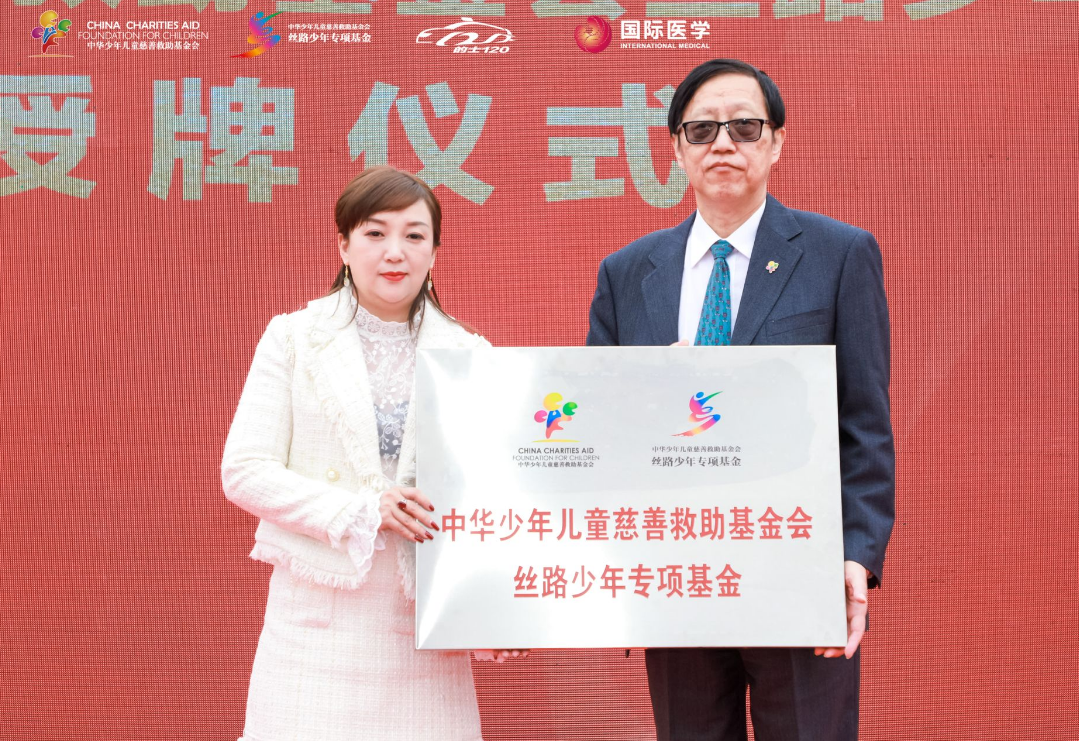 活動現(xiàn)場,中華少年兒童慈善救助基金會理事長兼秘書長王林為絲路少年專項基金進(jìn)行了授牌。陜西威高致遠(yuǎn)醫(yī)藥科技有限公司傾情捐贈100萬元善款,用于為全國境內(nèi)0-18周歲的腦癱、自閉癥、呼吸疾病、先天性心臟病、先天性小耳畸形等困境患兒提供醫(yī)療服務(wù)。