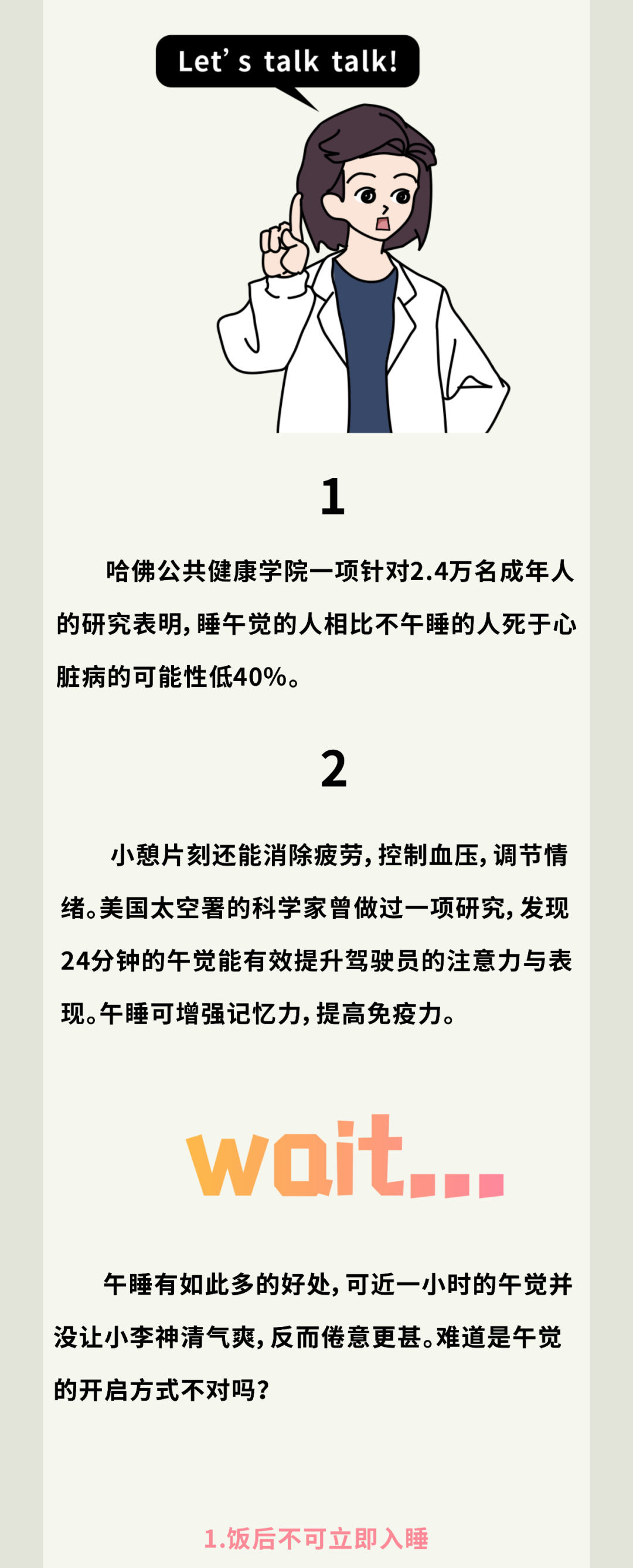西安國(guó)際醫(yī)學(xué)中心醫(yī)院腦科醫(yī)院神經(jīng)內(nèi)科二病區(qū)主任李建軍在此提醒,午睡雖好,并非適合所有人。建議體脂率高、血液循環(huán)系統(tǒng)不好的人群用午睡時(shí)間鍛煉身體,提高大腦供氧量。