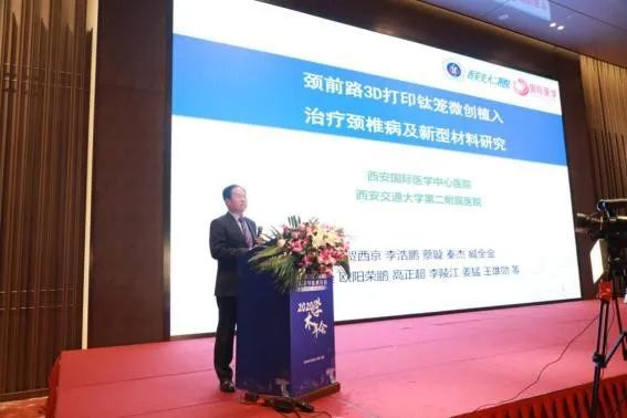 會(huì)議開始后,黃文華院長(zhǎng)與賀西京院長(zhǎng)分別就“醫(yī)學(xué)3D打印中的生物力學(xué)問(wèn)題”與“微創(chuàng)手術(shù)植入3D打印個(gè)性化鈦籠治療頸椎病與復(fù)合材料骨整合性能研究”展開了討論。