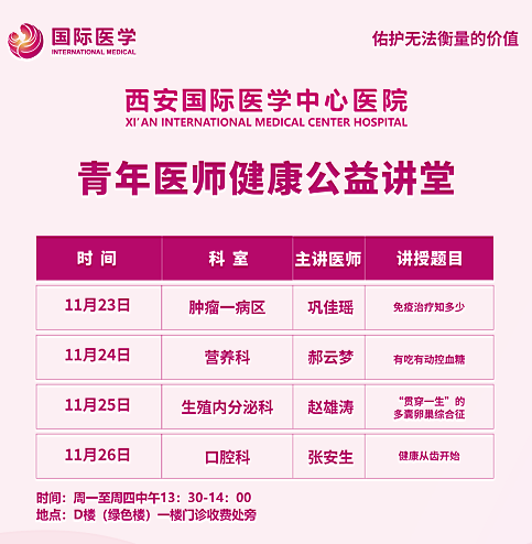 西安國際醫(yī)學(xué)中心醫(yī)院—青年醫(yī)師健康公益講堂預(yù)告
