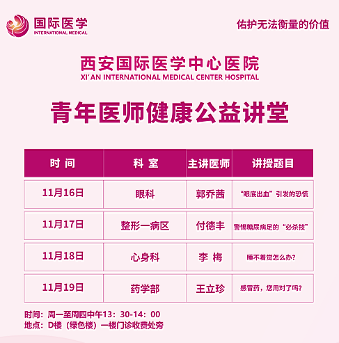 西安國際醫(yī)學(xué)中心醫(yī)院—青年醫(yī)師健康公益講堂預(yù)告