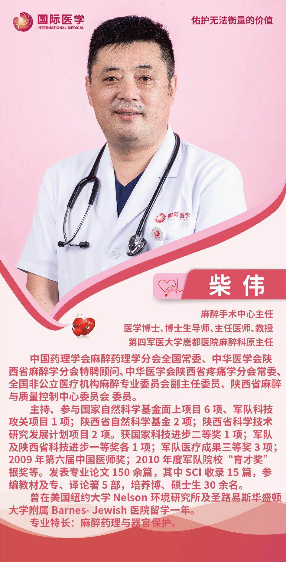 “那時,麻醉風(fēng)險比現(xiàn)在大得多!”柴偉說,才工作時,手術(shù)室里常遇到心跳驟停的患者,好在后來都搶救過來了。因此,搶救對麻醉醫(yī)生來說是得心應(yīng)手的。柴偉自信地說,在唐都醫(yī)院搶救能力最強的應(yīng)該是麻醉科醫(yī)生。在唐都醫(yī)院,柴偉一路晉升為副主任醫(yī)師、主任醫(yī)師,副教授、教授,并且負責(zé)麻醉科全面工作20年。越來越多的橄欖枝拋向他——1986年在北京協(xié)和醫(yī)院麻醉科進修心臟外科麻醉一年,先后赴日本、加拿大等多國進修交流。2006年,由國家基金委委派,他做訪問學(xué)者在美國紐約大學(xué)和華盛頓大學(xué)訪問一年。他主持和參與國家自然科學(xué)基金面上項目6項,軍隊及省部級課題5項。獲國家科技進步二等獎1項、軍隊及陜西省科技進步一等獎各1項,獲軍隊醫(yī)療成果三等獎3項。獲得中國醫(yī)師獎及軍隊院?!坝弄劇便y獎。發(fā)表論文150余篇,其中SCI收錄15篇;參編著作5部。此外,柴偉還擔任《臨床麻醉雜志》和《中華麻醉學(xué)雜志》通訊編委,國家衛(wèi)生部主管的醫(yī)學(xué)參考報麻醉學(xué)頻道編委。
