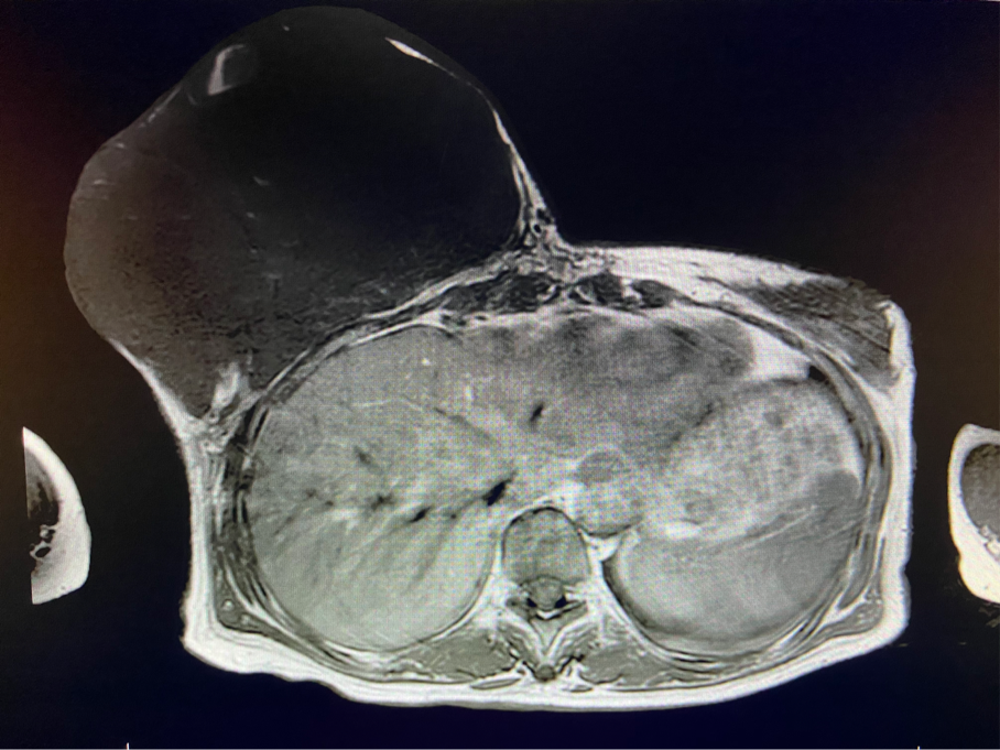 該患者右乳巨大腫物術前初步考慮乳腺葉狀腫瘤可能,因腫瘤太大,幾乎遍及整個右側乳房,為保證“無瘤原則”,術中切除范圍位置未知,極有可能出現(xiàn)皮瓣缺損。于是,經過和整形醫(yī)院郭樹忠院長、整形外科王愛武主任的討論,提供了兩種手術方式,一是創(chuàng)面修復(植皮或轉移皮瓣修復創(chuàng)面),二是乳房再造,與患者及家屬溝通后,決定先解決腫物,3年病情不再復發(fā)后,可以再考慮乳房重建。