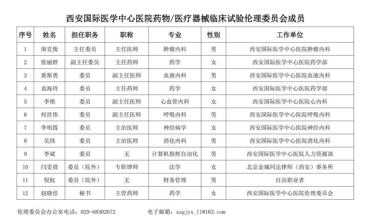 西安國際醫(yī)學(xué)中心醫(yī)院藥物/醫(yī)療器械|臨床試驗(yàn)倫理委員會(huì)成員