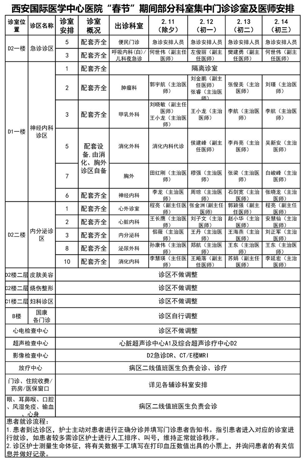 西安國際醫(yī)學中心醫(yī)院“春節(jié)”期間部分科室集中門診診室及醫(yī)師安排
