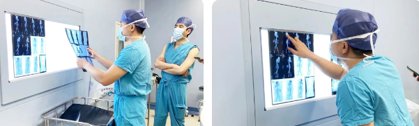 這位患者楊某,平日無任何不適癥狀,有高血壓病史7年。近日突感胸背部疼痛,加重4小時,呈持續(xù)性撕裂樣痛。當(dāng)?shù)蒯t(yī)院的胸部CT提示:主動脈增寬,考慮主動脈夾層,建議緊急轉(zhuǎn)往上級醫(yī)院治療。家人連夜把患者送到西安國際醫(yī)學(xué)中心醫(yī)院進(jìn)一步治療。經(jīng)急診核酸檢測后,楊某于12日凌晨3點(diǎn)走“主動脈夾層綠色通道”,住進(jìn)心臟外科ICU。進(jìn)一步檢查發(fā)現(xiàn),該患者有:主動脈夾層(DebakeyI型)、動脈夾層撕裂到左側(cè)髂總動脈,主動脈瓣返流(中量)、雙側(cè)胸腔及心包腔積液??紤]到主動脈隨時有破裂的風(fēng)險(xiǎn),他們當(dāng)機(jī)決定為楊某急診手術(shù)。手術(shù)于13日早上8點(diǎn)30分開始,張金洲及其團(tuán)隊(duì)先行主動脈根部重建,再用術(shù)中支架修復(fù)降主動脈,然后用四分支血管替換破裂的升主動脈及主動脈弓,最后吻合主動脈弓上分支血管。手術(shù)節(jié)奏流暢,團(tuán)隊(duì)配合默契,歷經(jīng)7個小時手術(shù)順利完成。