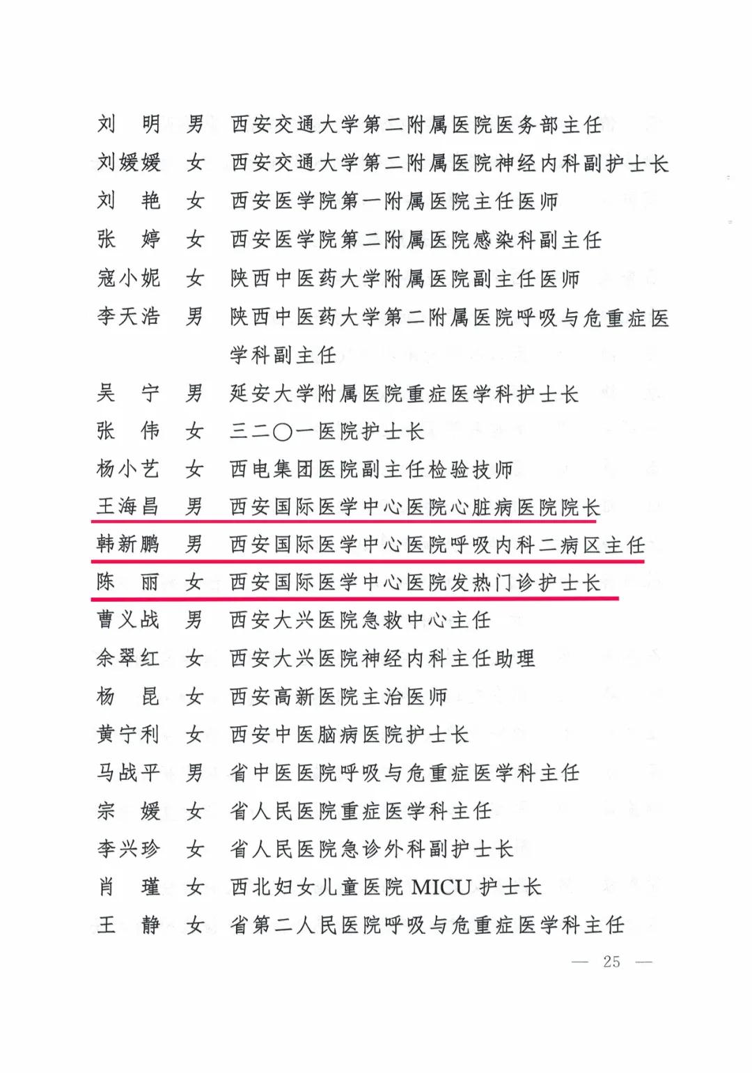 近日,中共陜西省委、陜西省人民政府印發(fā)《關(guān)于表彰全省抗擊新冠肺炎疫情先進(jìn)個(gè)人和先進(jìn)集體的決定》。西安國(guó)際醫(yī)學(xué)中心醫(yī)院援鄂醫(yī)療隊(duì)榮獲陜西省抗擊新冠肺炎疫情先進(jìn)集體;心臟病醫(yī)院院長(zhǎng)王海昌、胸科醫(yī)院呼吸內(nèi)科二病區(qū)主任韓新鵬、發(fā)熱門(mén)診護(hù)士長(zhǎng)陳麗榮獲陜西省抗擊新冠肺炎疫情先進(jìn)個(gè)人。