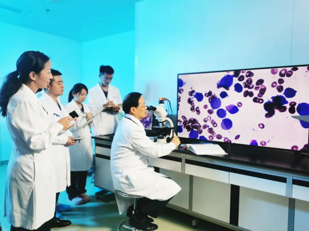 方向比努力更重要。梁英民決定從患者的基本資料入手,迅速捕捉到了“地質(zhì)勘探員、野外工作經(jīng)歷、沒有做過寄生蟲檢測”的關(guān)鍵詞。順藤摸瓜,再次做骨髓檢測,可能會有突破。極力勸說患者后,梁英民拿到了骨髓樣本,隨即前往實驗室,大腦高速運轉(zhuǎn)的狀態(tài)讓他無比興奮,目不轉(zhuǎn)睛生怕漏掉任何一個細(xì)節(jié),終于,他在巨噬細(xì)胞里揪出了“嫌疑犯”——利杜氏體即黑熱病的原兇!要推翻之前的結(jié)論不是件易事,梁英民徹夜未眠,尋找更多有力的證據(jù)。最終,對癥治療后,患者痊愈出院。也是從那時起,梁英民堅持為每一位患者閱片,即使在成為科主任后,梁英民仍保持親力親為用顯微鏡查看疑難患者的血液細(xì)胞形態(tài)的習(xí)慣,這也形成了每周兩天血液病科室醫(yī)生與實驗室技術(shù)員共同學(xué)習(xí)交流的傳統(tǒng)。