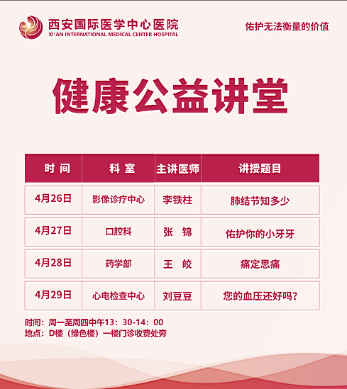 西安國際醫(yī)學中心醫(yī)院—青年醫(yī)師健康公益講堂預告
