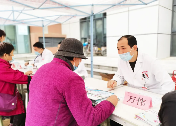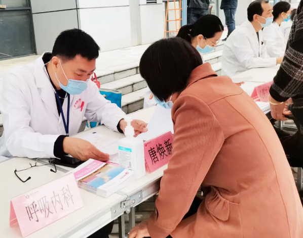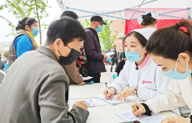 義診現(xiàn)場,各科醫(yī)護(hù)人員與前來咨詢的群眾充分溝通,免費(fèi)為大家測血壓、血糖,查看檢查報(bào)告并耐心地講解和指導(dǎo),并給出治療建議。