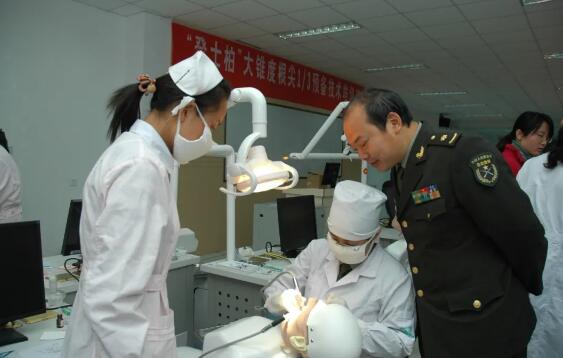 談到這點,倪龍興笑稱是因為“蜂窩爐”。當(dāng)年被第四軍醫(yī)大學(xué)軍醫(yī)系錄取后,學(xué)校派往上海統(tǒng)一接受錄取考生的隊長和指導(dǎo)員,在離開上海前一天受同事委托,要買幾個蜂窩爐回西安。倪龍興家住浦東,要到浦西的集合點,需要提前一天到,看到他們攜帶六七個蜂窩爐及其他隨行物品,不由分說幫著搬運行李,農(nóng)村孩子特有的樸實給他們留下了深刻的印象。在開往西安的火車上,隊長和指導(dǎo)員找到倪龍興,告訴他口腔系有一位錄取考生沒有來報到,問他愿不愿意加入口腔系。“那時候?qū)I(yè)沒什么概念,都是當(dāng)兵唄,學(xué)什么都行。”入校不久,倪龍興就發(fā)現(xiàn)口腔系的“慘淡待遇”:“你們口腔???有什么難學(xué)的,一口牙就二三十顆,一天學(xué)一顆一個月就搞定了!”倪龍興經(jīng)常會被其它系的學(xué)員調(diào)侃?!跋敕瘩g吧,還不知道說什么。因為聽著好像也就是那么回事?!笨谇徊皇苤匾暿悄啐埮d當(dāng)時的感覺。
