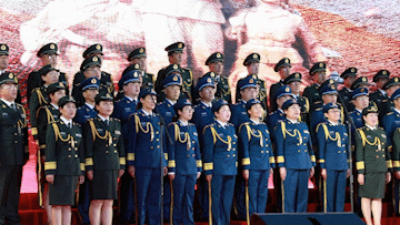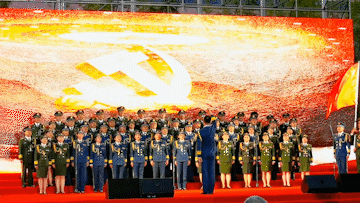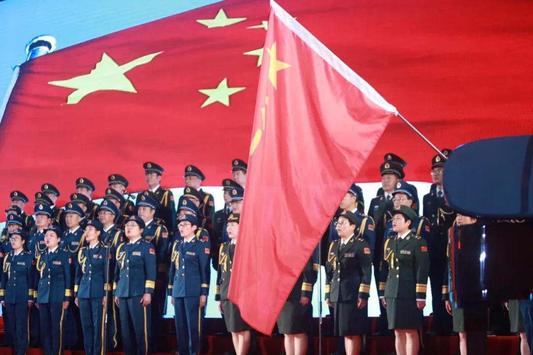 “我是一個(gè)兵,來(lái)自老百姓……”合唱將《我是一個(gè)兵》《沒(méi)有共產(chǎn)黨就沒(méi)有新中國(guó)》巧妙編排在一起?!段沂且粋€(gè)兵》鏗鏘有力,氣勢(shì)高亢,展示了老兵們永不褪色的軍人風(fēng)采;隨著中國(guó)人民解放軍進(jìn)行曲響起,三名軍旗手,邁著堅(jiān)實(shí)的步伐走上舞臺(tái);“沒(méi)有共產(chǎn)黨就沒(méi)有新中國(guó),沒(méi)有共產(chǎn)黨就沒(méi)有新中國(guó)……”激情高昂的歌聲表達(dá)出每一個(gè)人的心聲,合唱融入了京劇唱法,男聲鏗鏘有力,氣勢(shì)十足,女聲委婉細(xì)膩,優(yōu)美動(dòng)聽(tīng),極富有感染力,將整場(chǎng)氣氛推向高潮,贏得全場(chǎng)陣陣掌聲。