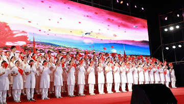 88名醫(yī)務(wù)人員中的預(yù)備黨員、入黨積極分子組成的天使合唱團(tuán),此次參賽曲目是《映山紅》。歌曲《映山紅》系電影《閃閃的紅星》的插曲,表達(dá)了人民對(duì)紅軍的熱愛(ài),對(duì)英雄的崇敬之情。