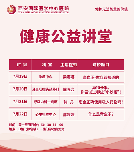 西安國際醫(yī)學中心醫(yī)院—青年醫(yī)師健康公益講堂預告