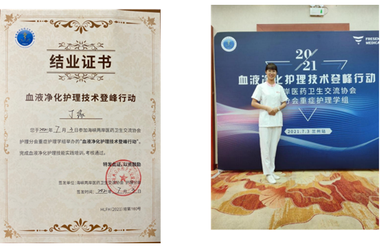 2021年7月,我院血液凈化中心護(hù)士丁緣受邀參加,由海峽兩岸醫(yī)藥衛(wèi)生交流協(xié)會(huì)護(hù)理分會(huì)重癥護(hù)理學(xué)組舉辦的“血液凈化護(hù)理技術(shù)登峰行動(dòng)”活動(dòng)。在此次全國(guó)比賽中,丁緣取得了二等獎(jiǎng)的優(yōu)異成績(jī)。
