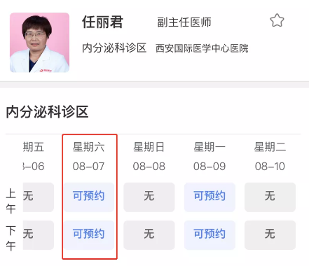 進入預約掛號后,點擊選擇其他門診—內(nèi)分泌科診區(qū)—任麗君—選擇預約時間—填寫流行病學史調(diào)查表,完成預約。