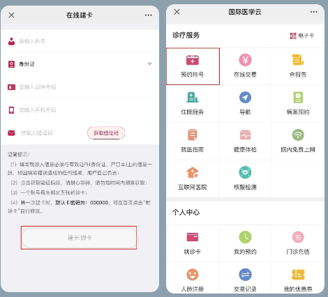 3、輸入個(gè)人信息完成就診卡綁定。綁卡后,點(diǎn)擊【預(yù)約掛號(hào)】