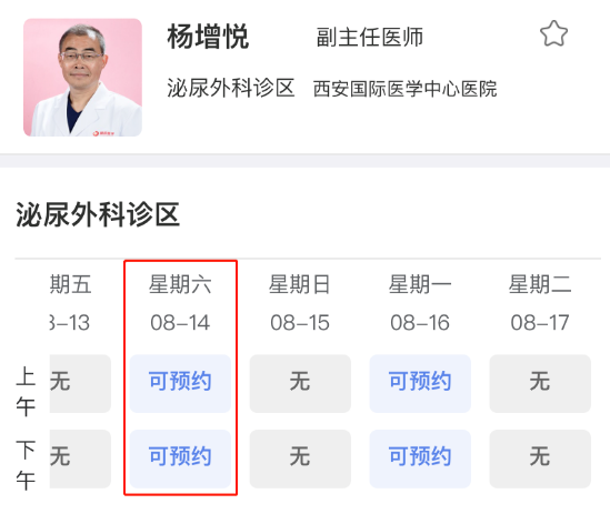 進(jìn)入預(yù)約掛號(hào)后,點(diǎn)擊選擇其他門診—泌尿外科診區(qū)—楊增悅—選擇預(yù)約時(shí)間—填寫流行病學(xué)史調(diào)查表,完成預(yù)約。