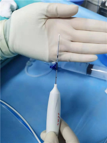 周曉東主任說,傳統(tǒng)手術(shù)是通過頸部正面進(jìn)入、走的是一條“康莊大道”,雖然路好走了,但對頸前區(qū)組織的破壞也大了;而以上提到的消融術(shù)就是現(xiàn)在治療甲狀腺結(jié)節(jié)的另一種方法。即在超聲的全程引導(dǎo)下,將一根1.4mm粗的電極針插入結(jié)節(jié)內(nèi)部,通過發(fā)射高頻電流,微波,甚至激光使病灶溫度升高,發(fā)生凝固壞死,然后人體會慢慢將這些壞死的組織吸收掉,結(jié)節(jié)(腫瘤)因此“消失”。