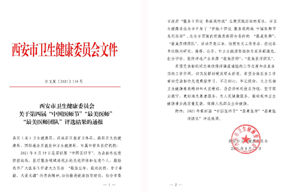 在中國(guó)醫(yī)師節(jié)到來(lái)之際,西安市衛(wèi)健委、高新區(qū)文旅健康局表彰了一批先進(jìn)醫(yī)療機(jī)構(gòu)、優(yōu)秀醫(yī)務(wù)工作者,西安國(guó)際醫(yī)學(xué)中心醫(yī)院3個(gè)科室、6名醫(yī)生獲得表彰。
