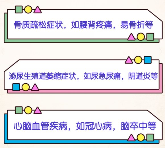 實際上,除了近期危害,因缺乏雌激素會帶來遠(yuǎn)期危害,嚴(yán)重影響女性的健康和生活質(zhì)量,比如: