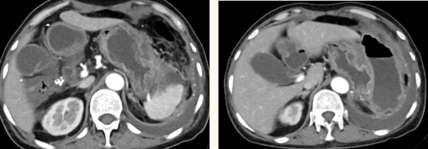 一籌莫展的她終于在病友的介紹下,來到西安國際醫(yī)學(xué)中心醫(yī)院找到蔡磊主任。經(jīng)過詢問病史,查體等,蔡磊主任建議口服索坦治療。3個月后,李阿姨復(fù)查CT提示胃間質(zhì)瘤較前明顯縮小,大小約10.4cm?6cm。但仍存在消化道出血,營養(yǎng)狀況差,全身無力,骨髓抑制。蔡磊主任隨即將患者收治入院。
