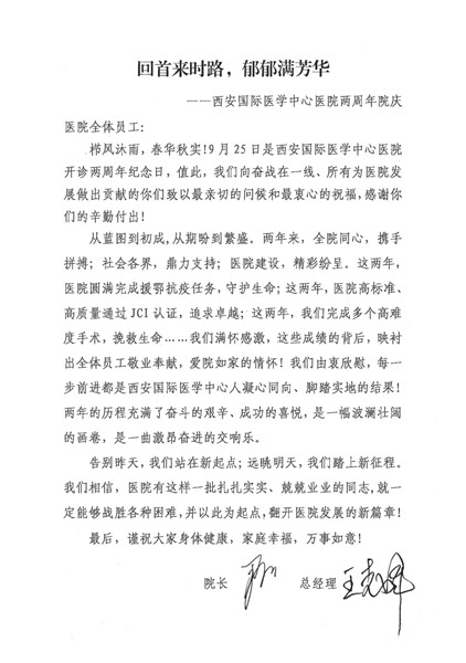2021年9月25日是西安國際醫(yī)學(xué)中心醫(yī)院兩周歲生日!