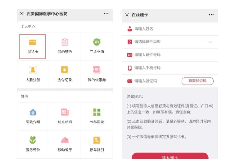 (2)沒(méi)有電子就診卡的人員,需輸入個(gè)人信息進(jìn)行在線(xiàn)建卡,建卡后返回診療服務(wù)頁(yè)面點(diǎn)擊【核酸檢測(cè)】,進(jìn)行核酸檢測(cè)預(yù)約并線(xiàn)上支付費(fèi)用。