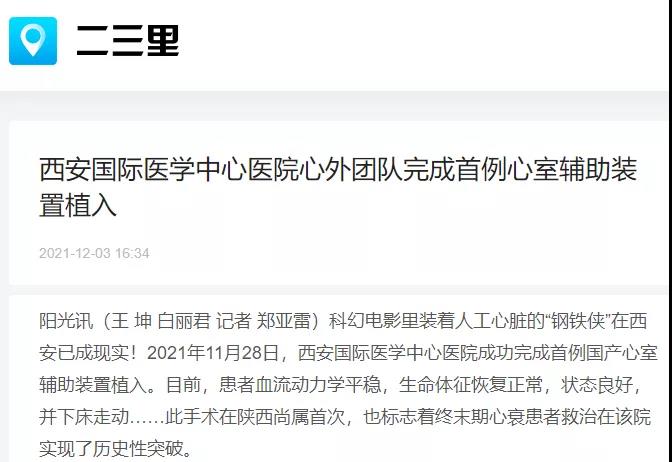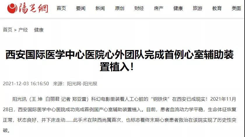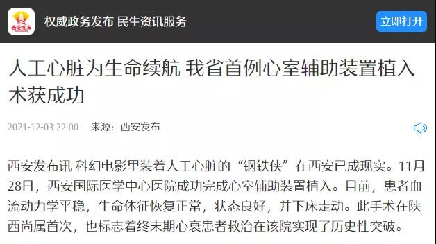 西安國際醫(yī)學(xué)中心醫(yī)院心外團(tuán)隊(duì)完成首例心室輔助裝置植入!