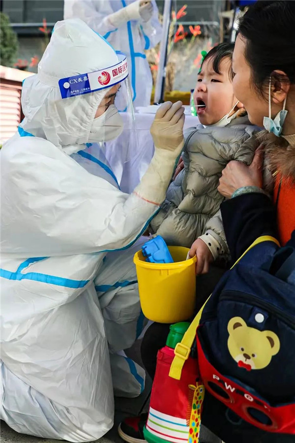 “昨天夜里接到通知后,今早就集結(jié)出發(fā)了。我們分在不同的核酸采樣點(diǎn),大家也都抓緊每一分每一秒,做好采集工作?!睆堁╂谜f,前來做核酸的群眾積極配合,自覺排好隊(duì),間隔一米,很多人在采樣后輕聲對(duì)我們說謝謝。
