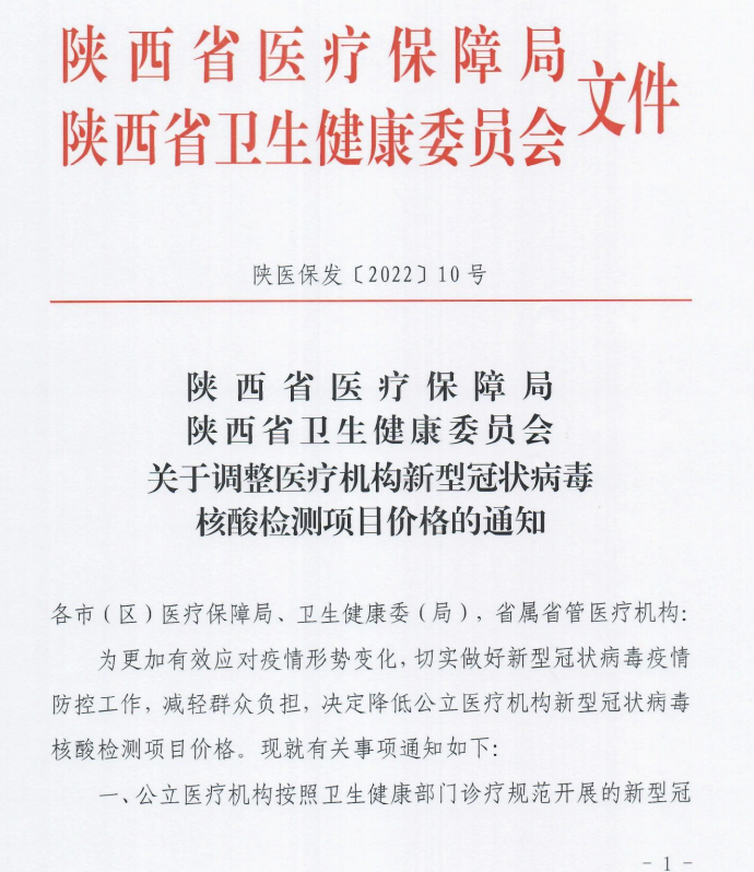 關于調整醫(yī)療機構新型冠狀病毒核酸檢測項目價格的通知