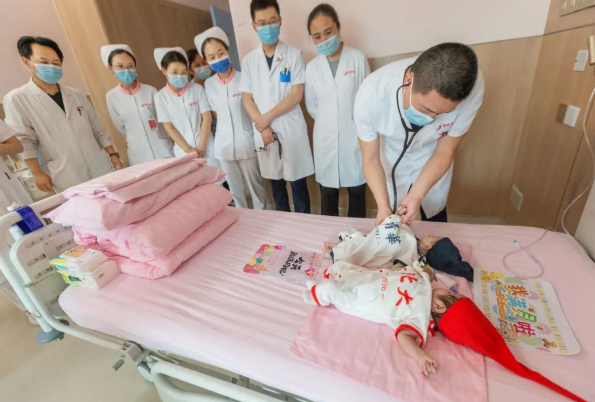 近20天的精心治療、悉心呵護,兩個小寶貝從重癥監(jiān)護室轉(zhuǎn)回普通病房,也迎來了滿月?!皟蓚€孩子同時手術(shù)、同時康復(fù)、同時過滿月,就像心臟外科的‘雙胞胎’,樂樂和朵朵長大了要記得來看看阿姨??!”在心臟外科病房,臨時護士媽媽笑意盈盈的眼中泛著淚花。