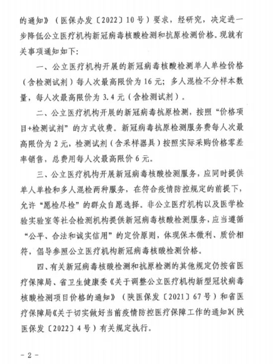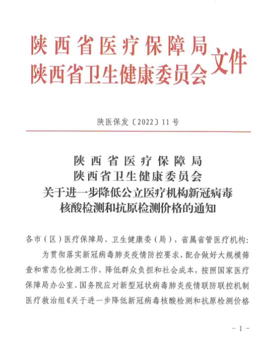 關(guān)于進(jìn)一步降低公立醫(yī)療機構(gòu)新冠病毒核酸檢測和抗原檢測價格的通知