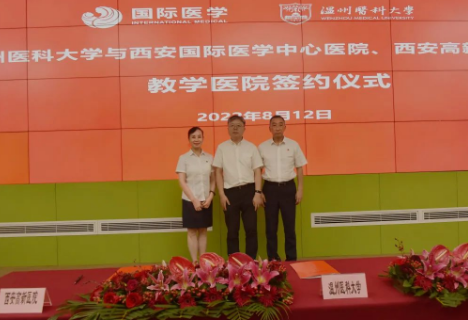 8月12日上午,溫州醫(yī)科大學(xué)與西安國際醫(yī)學(xué)中心醫(yī)院、西安高新醫(yī)院教學(xué)醫(yī)院簽約儀式在西安國際醫(yī)學(xué)中心醫(yī)院六樓學(xué)術(shù)廳隆重舉行。中國工程院院士、溫州醫(yī)科大學(xué)校長李校堃,原陜西省科學(xué)技術(shù)協(xié)會副主席丁德科,溫州醫(yī)科大學(xué)教務(wù)處副處長梁韶暉,院士辦副主任卞成德;國際醫(yī)學(xué)董事長史今、總裁劉瑞軒、副總裁孫文國、副總裁兼董事會秘書丁震、西安國際醫(yī)學(xué)中心醫(yī)院院長尹強(qiáng)、西安高新醫(yī)院院長宋瑛等領(lǐng)導(dǎo)出席簽約儀式,丁震副總裁主持儀式,百余名醫(yī)護(hù)代表參加活動共同見證簽約。