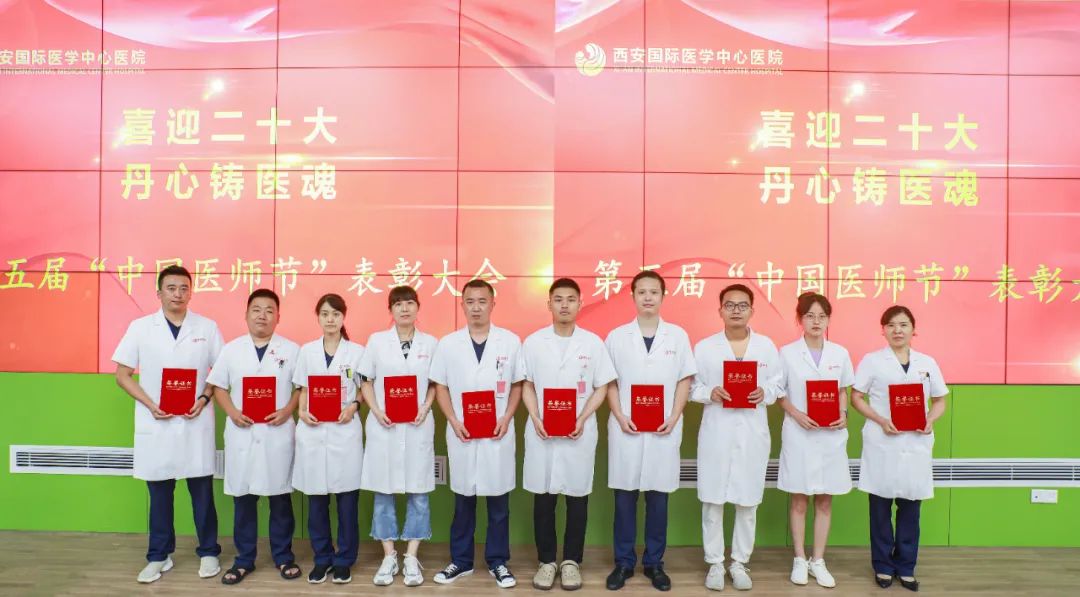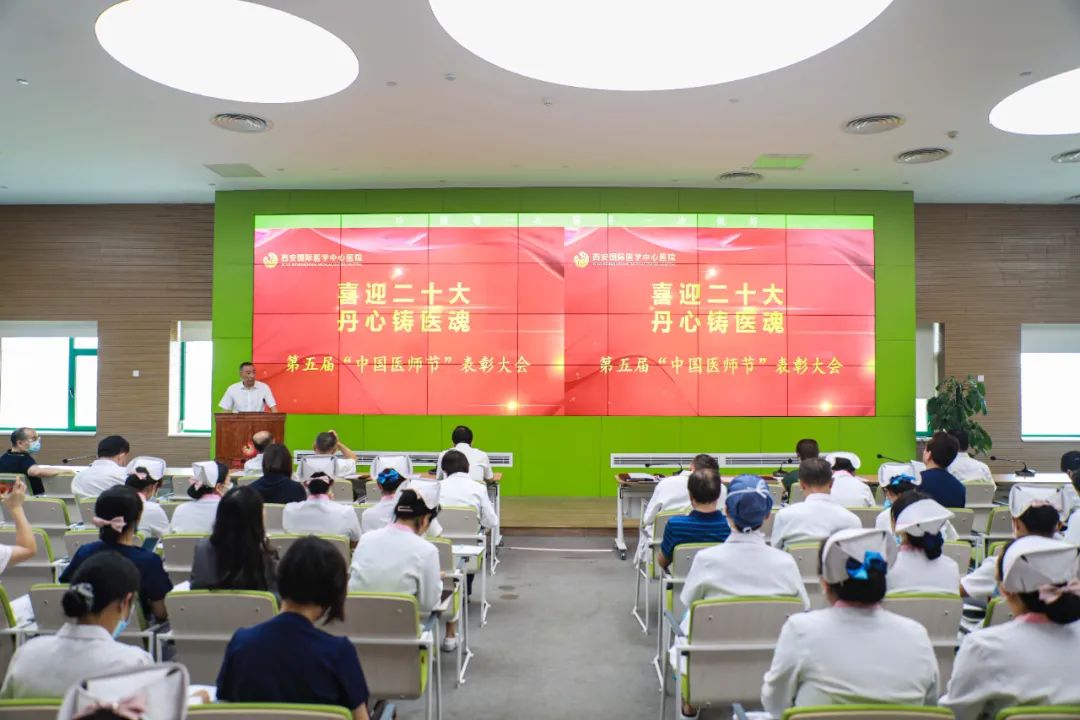 為進(jìn)一步加強(qiáng)醫(yī)師隊(duì)伍建設(shè),不斷激發(fā)我院醫(yī)師職業(yè)榮譽(yù)感、神圣感、使命感,在中國(guó)醫(yī)師節(jié)到來之際,西安國(guó)際醫(yī)學(xué)中心醫(yī)院舉行“喜迎二十大 丹心鑄醫(yī)魂”第五屆中國(guó)醫(yī)師節(jié)表彰大會(huì)。院長(zhǎng)尹強(qiáng)、總經(jīng)理王志峰、財(cái)務(wù)總監(jiān)王亞星、副院長(zhǎng)李武平、楊峰、張斌、劉延彤、付強(qiáng)以及醫(yī)生代表參加。