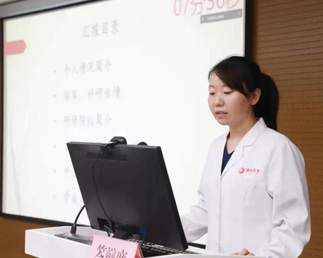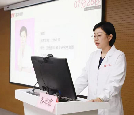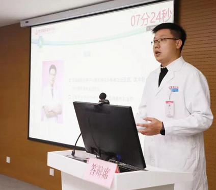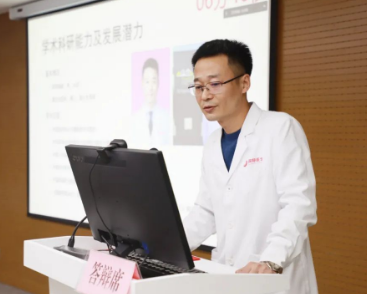 經(jīng)過前期籌備、選拔、評審,共有9名申請人進(jìn)入答辯環(huán)節(jié)。按照研修人員遴選流程,呼吸與危重癥醫(yī)學(xué)科歐陽海峰、胸腔外科王武平、心臟內(nèi)科李煒、神經(jīng)外科鄭濤、生殖內(nèi)分泌科丁旭、心身醫(yī)學(xué)科鄒學(xué)、檢驗中心田江紅、醫(yī)學(xué)美容中心王延婷、北院區(qū)兒科田恬依次就學(xué)歷背景、科研進(jìn)展、國際交流合作經(jīng)歷、出國研究意向等方面進(jìn)行了英文展示與匯報。
